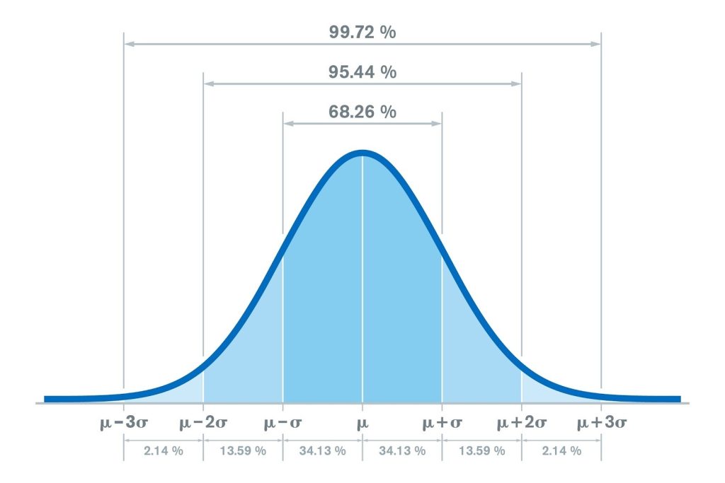 Ý nghĩa của Độ lệch chuẩn được thể hiện rõ nhất qua phân phối chuẩn (Normal Distribution) với quy tắc thực nghiệm 68-95-99.7:
