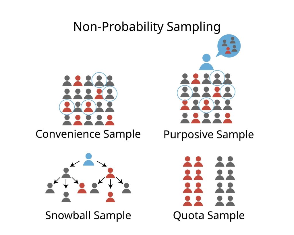 • Vi phạm điều kiện suy diễn thống kê: Do không xác định được xác suất cấu thành mẫu, nhà nghiên cứu không thể tính toán chính xác sai số chọn mẫu (Margin of error).